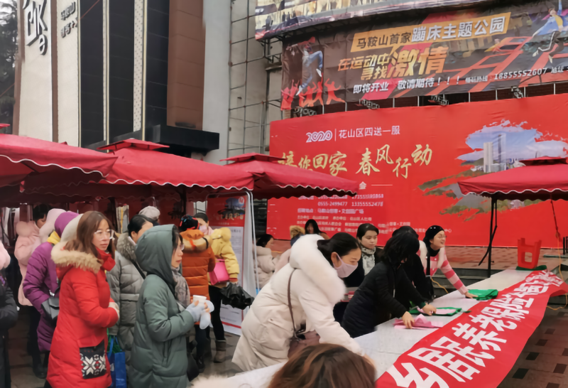 2020年1月,受花山區(qū)人社局委托,新華人力主辦“春風(fēng)行動,接您回家”四送一服專場招聘會,參會企業(yè)85家,提供就業(yè)崗位2850個。